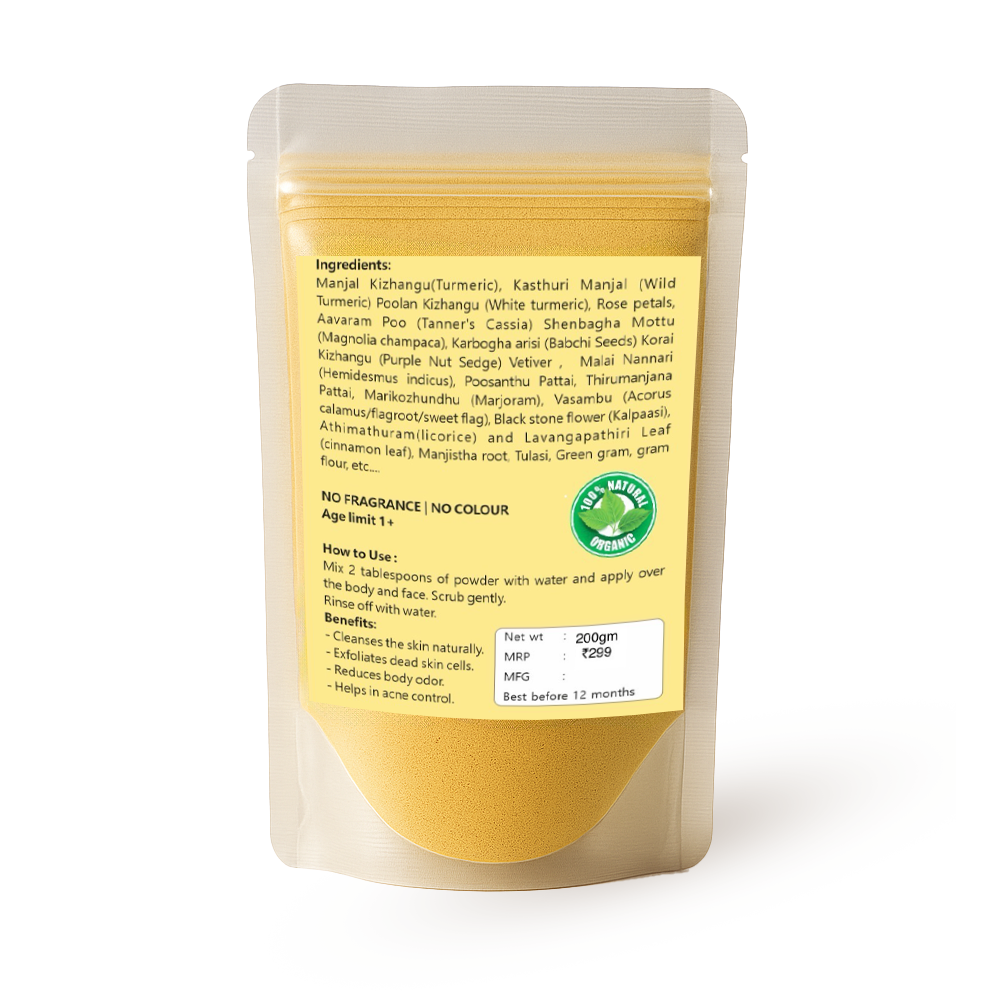 this authentic Nalangumavu Bath Powder gently cleanses, controls pimples, removes body odour, and brings out your natural glow.