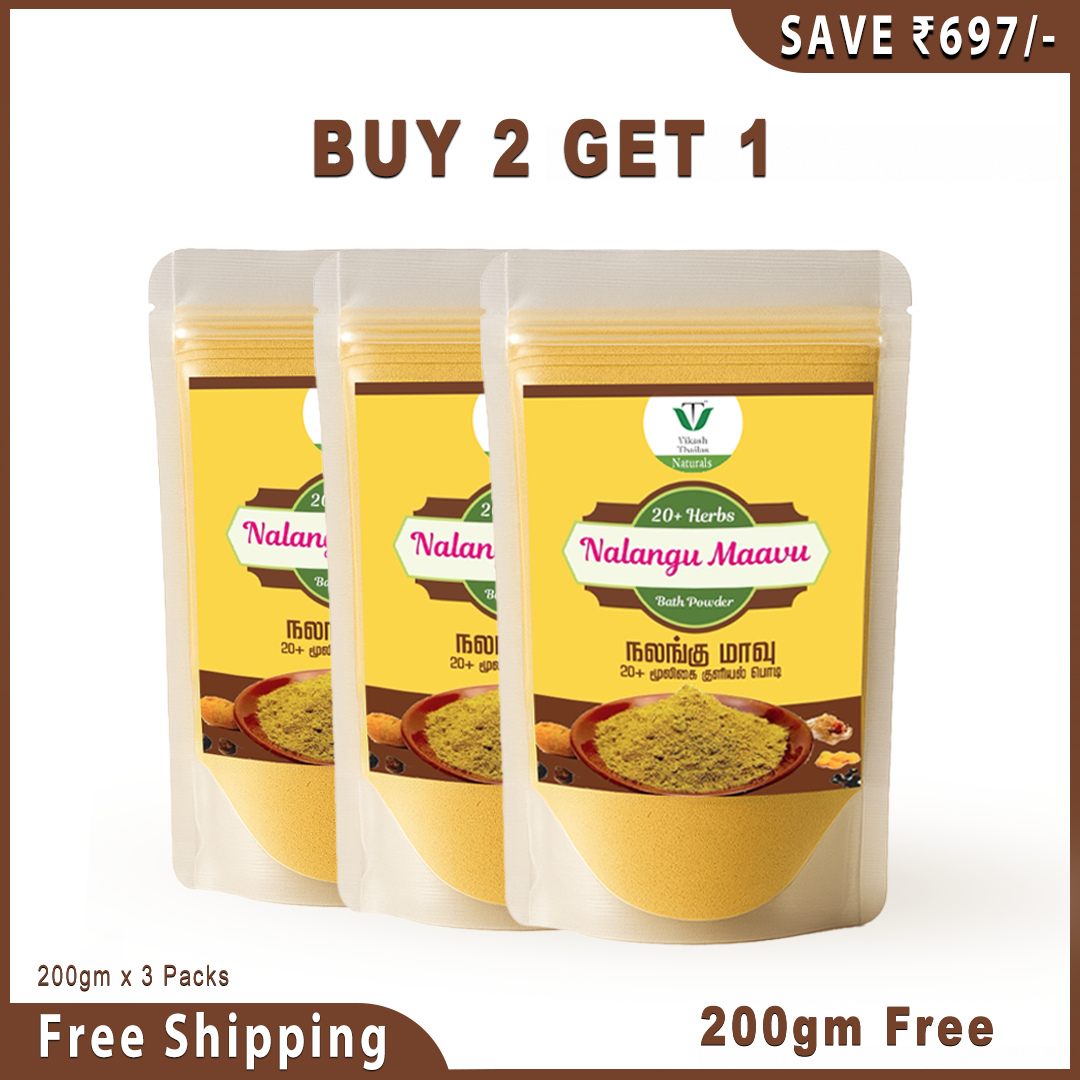 Buy 2, Get 1 Free – Traditional 20+ Herbs Nalangumavu Bath Powder 200gm