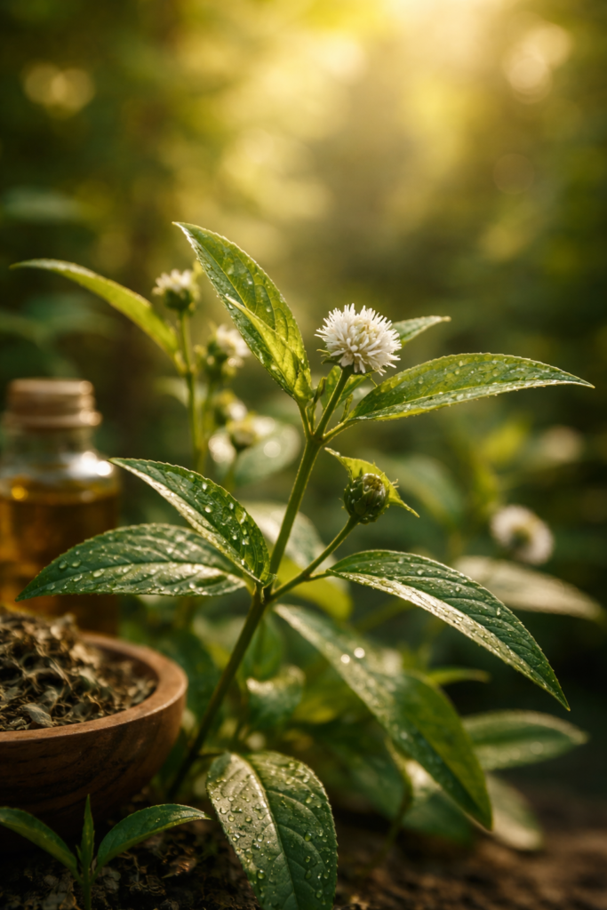 Bhringraj, also called *False Daisy, is a powerful herb that has been used for centuries in *Ayurveda to care for hair and scalp. It is known for its anti-inflammatory, antimicrobial, and antifungal properties, which may help keep the scalp healthy.