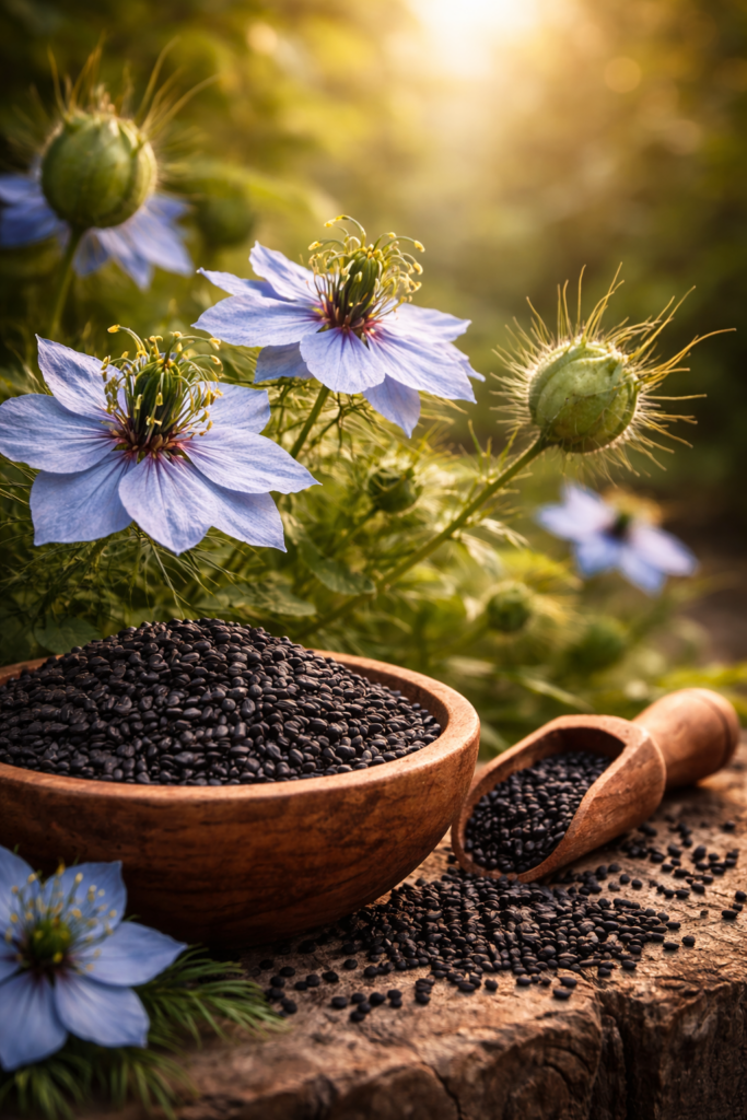 Kalonji contains thymoquinone, an active compound known for its anti-inflammatory and antioxidant benefits.
